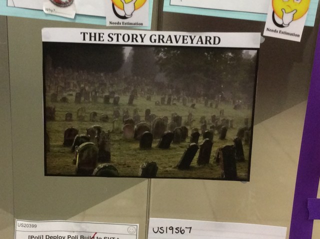 Sounds like a muda cemetery Jay! Great to visualise this as a reminder of how the team prevented waste flowing through the system. Definitely worth categorising why each story became waste in order for the team to learn & then feed back suggestions in to the system of work 🙂 #kaizen