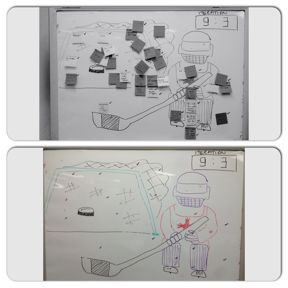 Yesterday we had our team retrospective and we were lucky enough to have our Head of Technology join us which was fantastic. Claudia is a Canadian and as most of the people from that part of the world she is passionate about Ice Hockey. When it came time to choose our theme for this week and knowing that Claudia would be joining us, a member of our team (Ji) suggested that an Ice Hockey theme would be fitting.